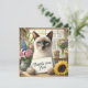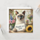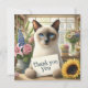 "Expresse sua gratidão de uma forma encantadora com este Gato com Cartões de agradecimentos Flor. Apresentando um gato siamês bonito segurando um belo buquê de flores, este charmoso design adiciona um toque de calor e gentileza aos seus obrigados. Perfeito por enviar apreciação para qualquer ocasião, pessoal ou profissional."