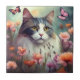 Lindo gato com flores e borboletas, criação digital usando arte gerada pela IA.