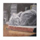 Este azulejo de cerâmica de gato cochilando apresenta a obra de arte original, "O Marcador" que retrata um gato cinza dormindo em um livro antigo em uma livraria ou biblioteca escura. Este azulejo temático de gato está disponível em dois tamanhos diferentes e pode ser usado como um suporte de copo ou um excelente azulejo de destaque perfeito para amantes de gatos! Direitos autorais da obra de arte: Dominic A. White.