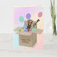 Gato bengala em caixa de cartão genérica com balões e confete para 75 anos