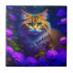 Adorável gato laranja sentado num pedaço de flores ai art.