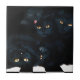 Um grupo de gatos pretos peludos se amontoando em um andar branco e preto