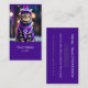Um cartão de visita com uma brilhante arte de fantasia. Um gato de mesa de jazzy está vestido com um suéter e um boné roxos.Personalize-o com a sua informação neste momento... A Canva AI e Alma Wad, uma designer humana, colaboraram no design. Perfeito para todos que gostam de gatinhos cômicos, púrpura vibrante e humor de inverno. Ele vem em uma embalagem de 100 por embalagem.