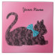 Este encantador azulejo cerâmico apresenta uma silhueta de gato preto, graciosa, vestindo um falso arco de palha de apiqué, colocado sobre um fundo de gradiente rosa macio. Personalize com seu nome! Um sotaque perfeito para o banheiro feminino, área de vaidade, ou mesmo como uma guarnição decorativa para amantes de gatos. Feminina, divertida e totalmente única.