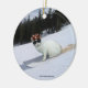 O ornamento do gato do divertimento caracteriza o gato branco em um Snowboard.  Visite www.breakoutpets.com para ver como você pode obter seu próprio animal de estimação neste ornamento