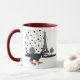 Gato preto e branco que veste as sapatilhas vermelhas na caneca de Paris