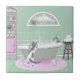 Uma cinza querido e um gatinho branco observam as bolhas subirem de um banho em funcionamento. Pinks e sage verdes dominam esta cena aconchegante. A minha vida artística foi criar narrativas sobre gatos e a vida de gatos durante muitos anos. Nesta série de azulejos de arte, eu volto aos meus azulejos de música.