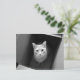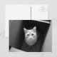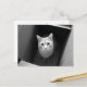Estas cartas apresentam uma fotografia branca e preta engraçada de um gato dedo sentado numa caixa de papelão. Esta imagem também está disponível em carimbos de postagem correspondentes. Foto ©Archie Patenaude