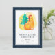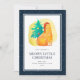 Cartão de Natal bonito e meowy, com a ilustração aquosa de um gato gordo vestindo um chapéu de Papai Noel. Personalize facilmente este cartão de feriado azul com aquarela com o seu nome de família e texto.