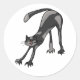 Um gato esticando suas garras é o que é essa design. O gato é um gato preto e está bem esticado. O gato também tem uma expressão em seu rosto que indica que está te olhando. Este design de estiramento de gato parece excelente nestes adesivos. Perfeito para si mesmo ou como presente