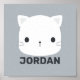 Este design apresenta um gatinho fofo com nome personalizado em estilo de fonte sans serif moderna cinza em fundo cinza claro.