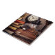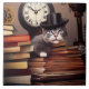 Animais Steampunk AI. Design de um gato vestindo um chapéu, tem um relógio e livros. Muito steampunk. Uma peça de inteligência artificial criada. Ele parece uma cara difícil de certa forma, mas provavelmente ama se mastigar. É um Design de IA fotorealista num azulejo.