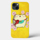 Sortuda japonesa Kawaii Cat. Boa Sorte hetero de Gato Charme do Japão. É bonito, adorável, rodeado por flores cor-de-rosa do Sakura. Uma mão está acenando trazendo sorte e boa sorte. Por outro lado, está a manter a carpa vermelha - símbolo da prosperidade e da riqueza.