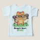 Este design apresenta um gato de desenho laranja giro vestindo óculos e levantando buracos, simbolizando força e inteligência. Perfeito para roupas e acessórios para crianças inspirarem confiança e diversão.