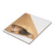O gato alaranjado do gatinho do gato malhado olha para fora do brinquedo favorito velho o azulejo marrom da foto do saco de papel
