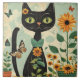 Gato negro, girassóis, borboletas, arte nativa