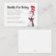 Encoraje seus hóspedes a livros de presentes em vez de cartas com este cartão "Cat in the Hat Books for Baby" (Gato nos Livros do Chapéu para Bebê), com o amado personagem Dr. Seuss. Este cartão branco é perfeito para qualquer Gato no chá de fraldas com tema Chapéu, fazer que seja fácil para os convidados participarem no crio da primeira biblioteca de um bebê. Adicione um toque divertido e inspirado no Seuss ao seu registro de chás de fraldas, e convide seus entes queridos a trazer um livro para celebrar a chegada do seu pequeno.