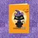Gato Preto Bonito no Cartão de Vassoura-de-Hallowe