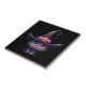 Azulejo cerâmico com ilustração temática divertida do Halloween para amantes de gatos. Um gato preto de olhos grandes vestindo um chapéu de bruxa preta grande com um cinturão roxo rosa ao redor da borda.
