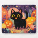 Gato Preto Cinto com Jack-o-Lanternas - Mousepad