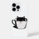 Um gatinho doce está sentado numa xícara de café decorada com nariz rosa