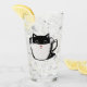 Um gatinho doce está sentado numa xícara de café decorada com nariz rosa