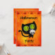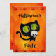 Gato Preto Assustador com Convite Crânio. Este gatinho bonitinho com olhos verdes grandes segurando um crânio humano! Não é um gato assustador todo ;) Que convite de festa de Halloween excelente. Este gato preto é como Edgar Allan Poe (ou algo assim;) mas não lhe trará má sorte. Eu prometo! A ilustração preta de Madame Colonelle Check Party Monster Store para mais convites de festas, cartas, presentes de Halloween, envelopes e selos de posto. Tudo assustador e engraçado!