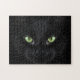 Quebra-cabeça difícil de resolver com foto de gato preto. Se você ama gatos e gosta do desafio de um quebra-cabeça difícil, este será o ajuste perfeito para você. O único detalhe que se destaca em uma foto quase toda preta são os lindos olhos verdes do gatinho.
