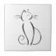 Gato preto minimalista num azulejo cerâmico branco de fundo.