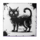 Elevem seu espaço com esse azulejo artístico cerâmico com uma ilustração ousada, esbranquiçada de gato preto. O gato é desenhado com linhas rugosas, raspadas e cercado por placas pretas de tinta, criando uma estética dinâmica e suja. A textura angustiada e o estilo de rabisco dão ao azulejo um apelo puro e moderno.