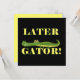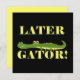 Um jacaré verde giro com texto amarelo que lê Mais Tarde Gator! Mais tarde, T-shirts do Gator, bolsas, canecas, ímanes, correntes-chave, guardas, cartões, autocolantes, botões, travesseiros e muito mais.