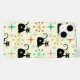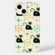 Este é um padrão de gatos atômicos pretos com rajadas retrorreflectoras de meio século cor-de-rosa, laranja e lacre sobre fundo de creme leve. É excelente procurando capas de iphone para amantes de gatos