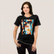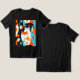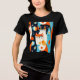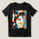 Tee em um design de inspiração moderna do século médio com dois gatos estilizados em formas ousadas e geométricas de laranja, lacre, preto e branco. padrões abstrato e formas retrorativas enchem o fundo, dando-lhe uma vibração divertida e vintage com uma borda minimalista.