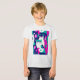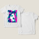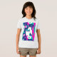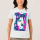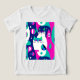 Camisa num design de inspiração moderna do século médio com dois gatos estilizados em forma ousada e geométrica de tartaruga, magenta, azul escuro e branco. padrões abstrato e formas retrorativas enchem o fundo, dando-lhe uma vibração divertida e vintage com uma borda minimalista.