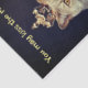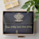 Papel de tecido dotado com a imagem de um gato vestindo uma coroa em frente ao anel de um grande rei com as palavras, Você pode beijar o anel.