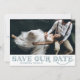 Anuncie sua data de casamento com esta foto clássica, salve o cartão de data. Ele apresenta a tipografia de arte teal deco com padrão correspondente. Personalize adicionando sua foto e detalhes. Este elegante tema de vintagem, que salva o anúncio de data, é perfeito para casamentos temáticos de Gatsby.