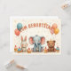 Ein zauberhaftes Geburtstagsmotiv mit einem fröhlichen Elefanten, einem niedlichen Hasen und einem lachenden Bären - umgeben von Ballons, Cupcakes und Konfetti. Dieses Bild fängt die kindliche Magie, Freude und Freundschaft auf liebevolle Weise.