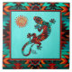 Dê uma olhada em sua casa com esta Gecko única e um Azulejo de cerâmica Sun! Ele apresenta um Lizard Gecko Sudoeste e um Sol em um Fundo Turquesa..... Cercado por uma Turquesa, Borda Laranja e Negra!