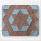 Quilt bloqueia o padrão castelo castanho e azul. O "castelo" central é uma forma de estrela castanha, rodeada pela "parede lateral 6", com as "torres de relógio" a estender-se do meio das paredes.
