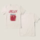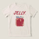 Serão todos geleias da sua camiseta. Este gráfico apresenta o simples slogan de uma palavra JELLY junto com uma ilustração de um boião de geleia ou compota. O design vermelho-escuro, azul e creme tem um estilo angustiado para um aspecto antigo.