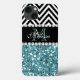 GLITTER AZUL-LIGEIRO (EFEITO IMPRESSO) COM PADRÃO CHEVRON PRETO E BRANCO, MONOGRAMADO COM O SEU NOME, O SEU INICIAL OU MONOGRAMA NUMA FITA NEGRA OU BANDA COM UMA FRONTEIRA DE DIAMANTES BRANCOS IMPRESSOS. Elke Clarke© para MonogramaGallery no Zazzle. TRENDY, CHIC LEGAL DESIGN PARA ELA, A TRENDSETTER, A FASHIONISTA