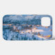 Esta incrível foto da Getty Images apresenta Maloja Alpina Village e Chiesa Bianca enquadrado por matas de neve no crepúsculo, Bregaglia, cantão de Graubunden, Engadin, Suiça.