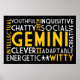 Apresentando palavras que descrevem o nascer da pessoa sob o sinal de ar astrológico mutátil de Gemini no Zodíaco.