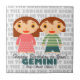 Este azulejo de aniversário feliz Gemini faz um presente perfeito de aniversário. Personalize-o com o nome e a data de nascimento da criança e está pronto para ir! Ilustração bonita e moderna de um dos 12 sinais de Zodiac.
