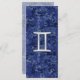 A silver chrome like Gemini zodiac symbol applique on a navy blue digital camouflage design texture print background. A modern urban racy design for a great custom birthday gift idea.