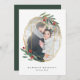 Cartões de natal geométricos elegantes apresentam seu conjunto de fotos favorito dentro a gemstone inspirado em folha de ouro falso, acentuado com folhas de cor aquática verde e bagas vermelhas. Personalize com seus nomes e um cartões de natal personalizado curto (mostrado com "feriados mais felizes") e adicione duas fotos adicionais às costas, juntamente com o ano.