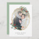Cartões de natal geométricos elegantes apresentam seu conjunto de fotos favorito dentro a gemstone inspirado em folha de ouro falso, acentuado com folhas de cor aquática verde e bagas vermelhas. Personalize com seus nomes e um cartões de natal personalizado curto (mostrado com "amor e alegria") e adicione duas fotos adicionais às costas, juntamente com o ano.