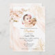 Celebre o momento sagrado com nosso Dourado Sexo Neutro com o Convite Foto Baptism! 🌟 Personalizar este design elegante adicionando uma foto carinhosa, criando uma manutenção personalizada que simboliza a pureza e a graça da ocasião. Perfeito por comemorar este marco especial, promete tornar o seu evento inesquecível. Ordene agora e deixe as matizes ouro e design eterno adorarem sua celebração! Este belo batismo ou convite batizante apresenta uma adorável cor de pêssego, um fundo neutro de aquarela com plantas de ouro, e uma cruz de ouro no centro. A parte de trás do cartão estão as flores de pêssego e o fundo.