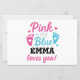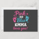 Celebre seu momento especial com este gênero personalizado revela design! Apresentando pegadas infantis, rosa e azuis, com a frase 'Rosa ou Azul, [Nome] te ama!', esta design fofa é perfeita para chás de fraldas, anúncios de gravidez, convites, roupas e presentes.