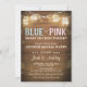 Europeia: Um convite divertido e apressado para sua festa de revelação de gênero! Fundo de madeira russa com luzes.